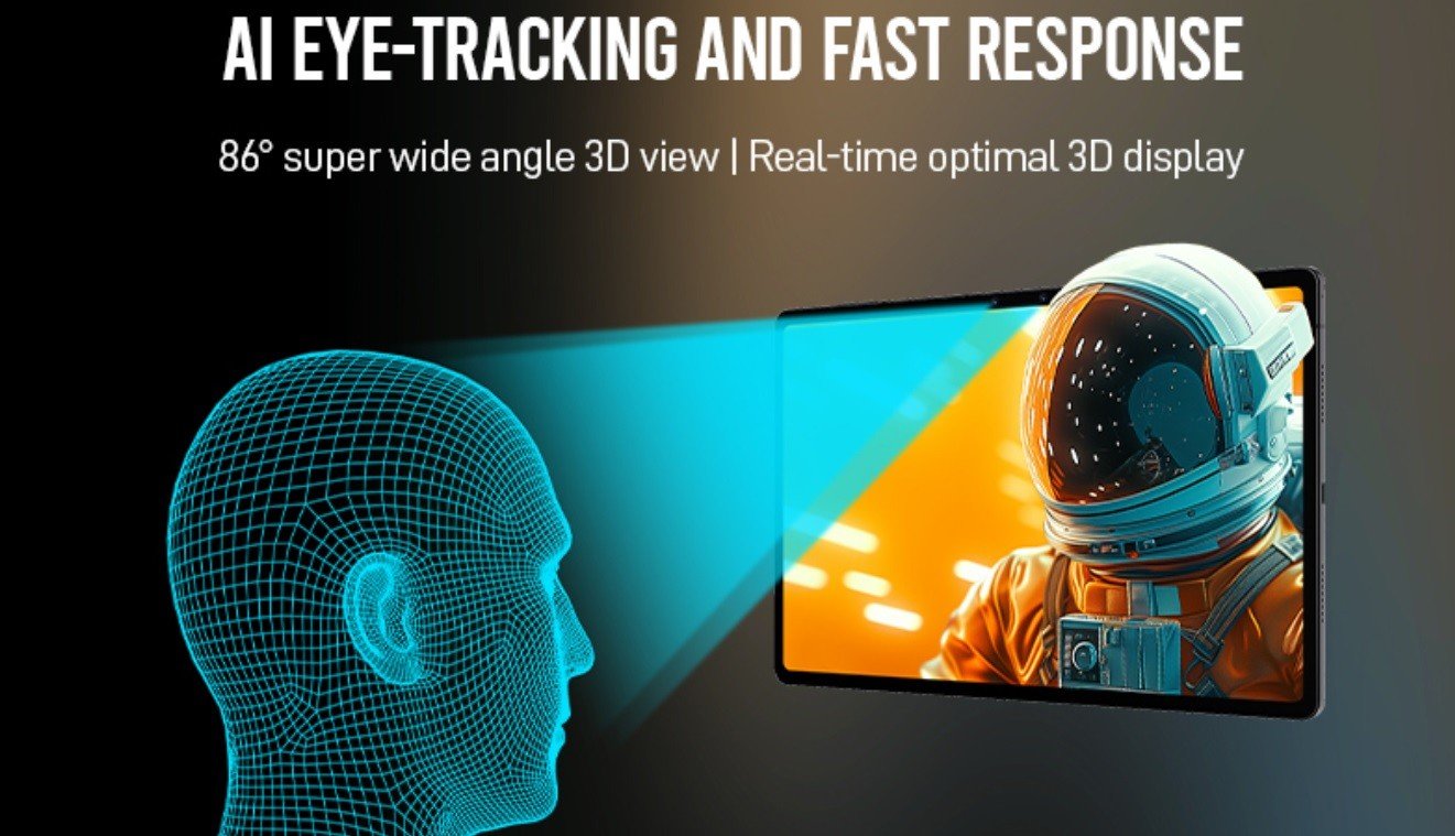 - Zwei 8 Megapixel Frontkameras für 3D-Selfies und Augen-Tracking, was die Darstellung von 3D-Inhalten in einem Blickwinkel bis zu 86° ermöglicht